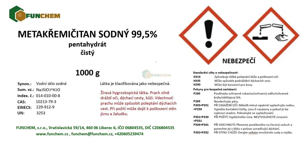 Metakřemičitan sodný pentahydrát č.Skladem 994135 Kč112 Kč bez DPH